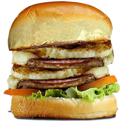 Pão de brioche, burger 120g, ovo, queijo, presunto, bacon, alface, tomate e cebola caramelizada