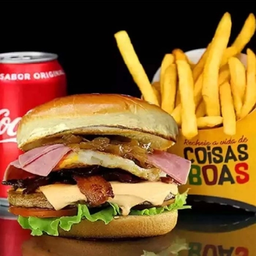 Pão de brioche, burger tradicional 56g, ovo, mussarela, presunto, bacon, alface, tomate e cebola caramelizada - Cópia ... Ver completo