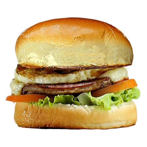 Pão de brioche, burger 56g, fatia de queijo, alface, tomate e cebola caramelizada